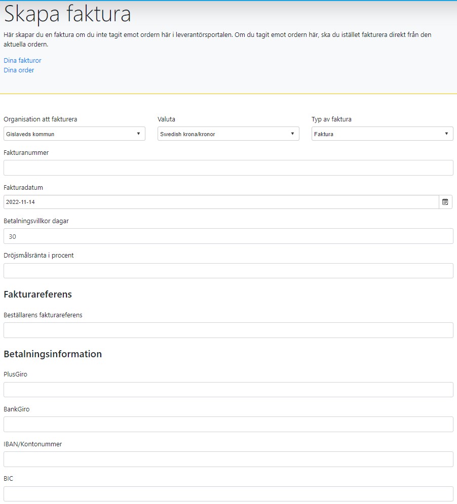 Den här manualen riktar sig till dig som leverantör till kommunen och syftar till att ge dig den information du behöver för att komma igång med fakturering i Leverantörsportalen som Gislaveds kommun tillhandahåller.
