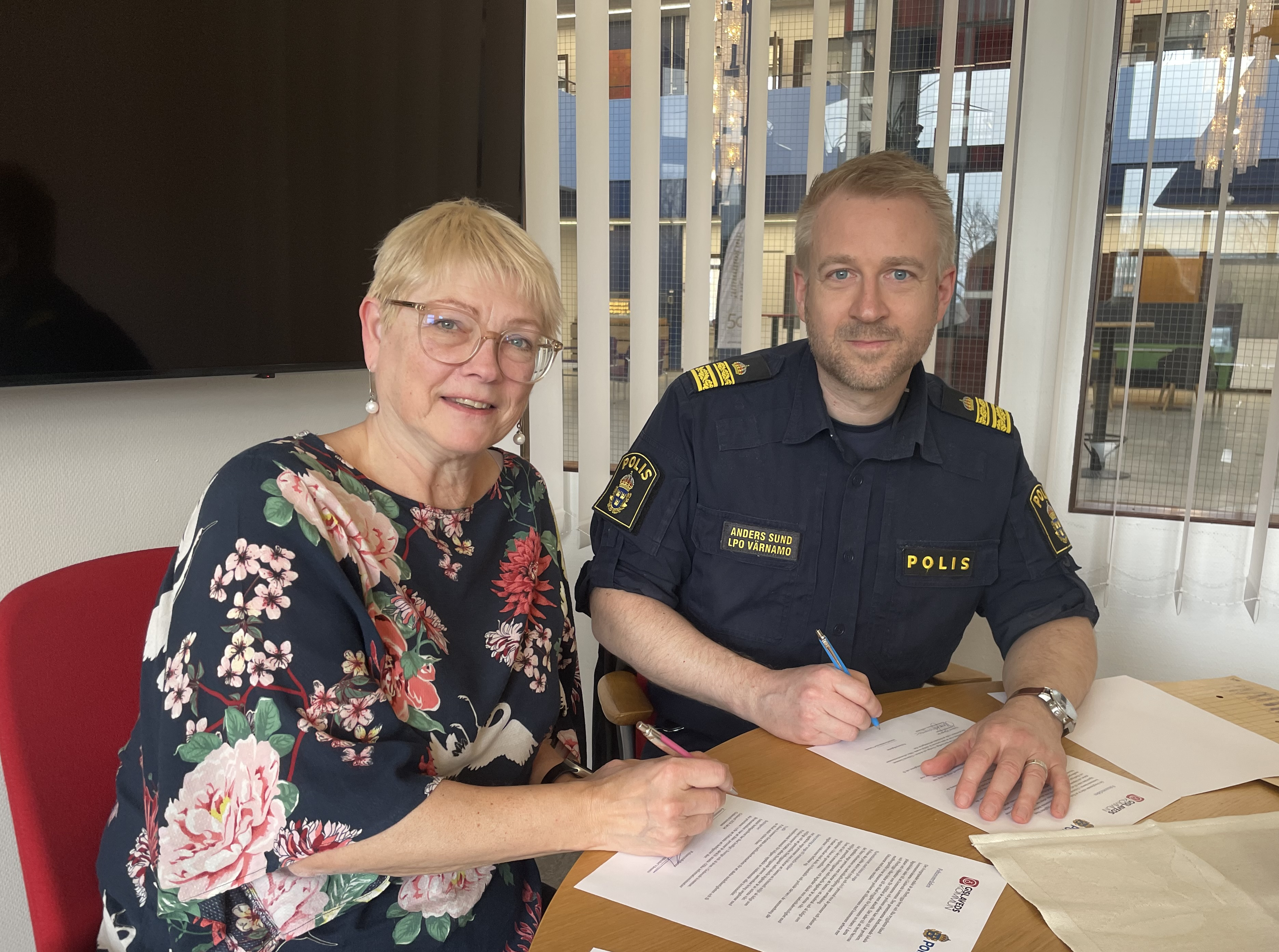Onsdagen den 24 april undertecknade kommunstyrelsens ordförande Marie Johansson (S) och lokalpolisområdeschef Anders Sund ett förnyat medborgarlöfte. Ett medborgarlöfte är en överenskommelse mellan polis och kommun om att genomföra aktiviteter och insatser för att skapa ett mer effektivt brottsförebyggande och trygghetsskapande arbete.