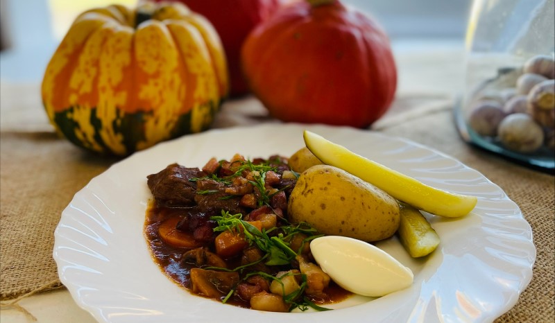 – Vi ville fokusera på en maträtt som tar till vara på det bästa av vad säsongen har att erbjuda och då föll valet på en fransk klassiker med mustiga smaker: Boeuf Bourguignon. Det är en populär maträtt bland både unga och äldre matgäster, säger Maja.