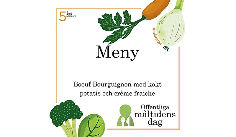 Vi har fantastiska offentliga måltider i vårt land. Det vill vi att fler ska få upp ögonen för. Därför koordinerar MATtanken för femte året i rad Offentliga måltidens dag, den 17 oktober 2024. Offentliga måltidens dag är en dag då offentliga måltidsverksamheter i hela landet visar upp sin verksamhet på olika sätt.