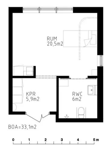 Ritningen är endast ett exempel på hur en lägenhet kan se ut.