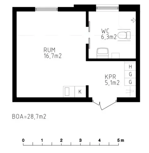 Ritningen är endast ett exempel på hur en lägenhet kan se ut.
