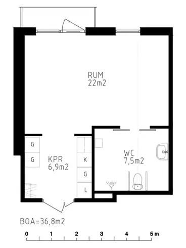 Ritningen är endast ett exempel på hur en lägenhet kan se ut.